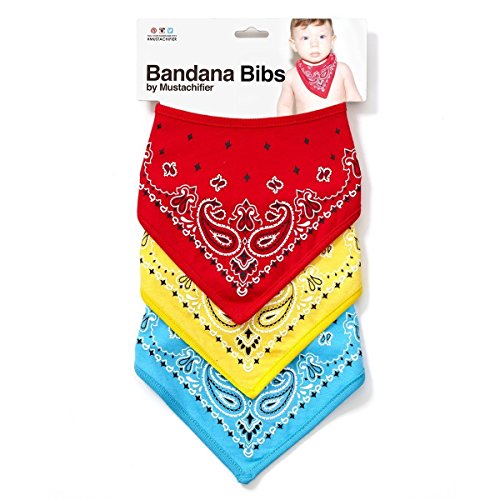 - Mustachifier Bandana Bibs - Set of 3, Red/Yellow/Blue