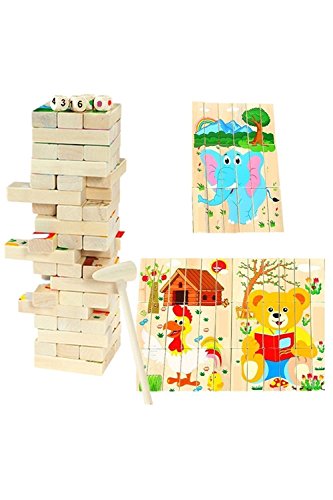 (Muu3) 木製パズル 知育玩具 立体パズル 積み木 バランスゲーム ジェンガ家族や兄弟でも仲良く遊べる!かわいい動物の絵柄入り木製積み木のおもちゃです。キッズパズル、ドミノ倒し、積み木など色々な遊び方ができるので 兄弟みんなでお使いいただけます。下の子が上の子の遊びに興味を持ったり、上の子が下の子に遊び方を教えたりと 兄弟仲も深まります。子供が成長すれば、家族でバランスゲームとして同じテーブルを囲むことも...【対象年齢】1歳から 【対象性別】男の子 女の子 男女共用