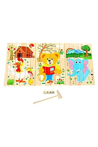 - 家族や兄弟でも仲良く遊べる!かわいい動物の絵柄入り木製積み木のおもちゃです。