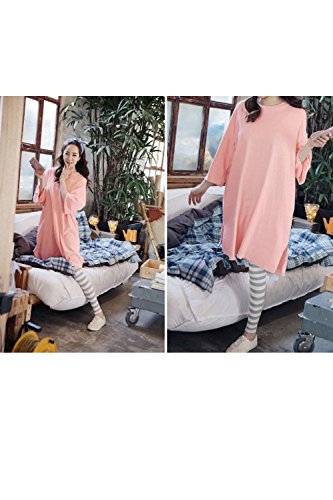マタニティ 授乳服 パジャマ 家着 ゆったりサイズ で楽々 半袖 ピンク ボーダーパンツ (XL)