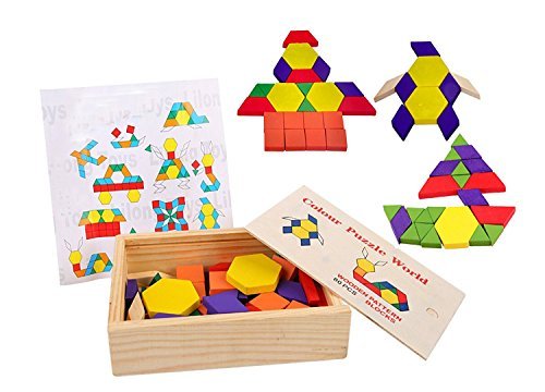 様々な形や色がそろっている木製の積み木セットで算数の概念を教えてあげましょう。数える、分類する、シンメトリーを探す、カラフルなデザインを作る、直線や面積測定をするなど使い方多数。ブロックの厚みは1cmあり、卓上に立てて3D形を作ることができます。60個入りボックス。
