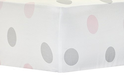 The fitted crib sheet with elastic band through the whole sheet consists of playful pink and gray polka dots.