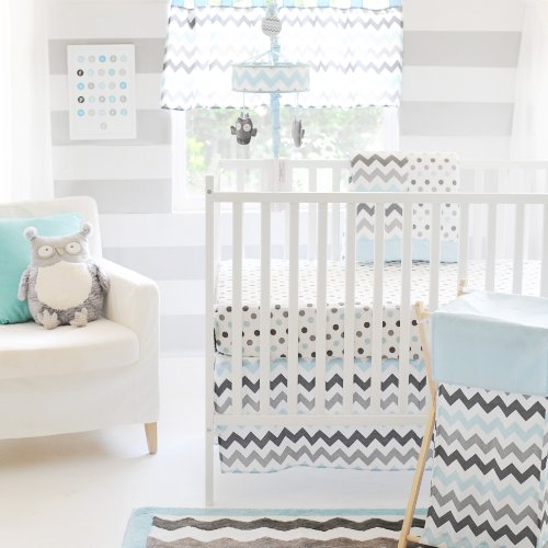 - My Baby Sam Chevron 3 Piece Crib Bedding Set, Aqua/Gray