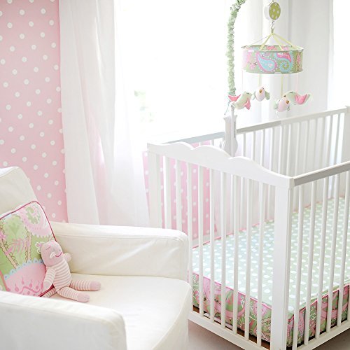 My Baby Sam Pixie Baby Bumper Less Crib Sheet, Pink and Green by My Baby Sam