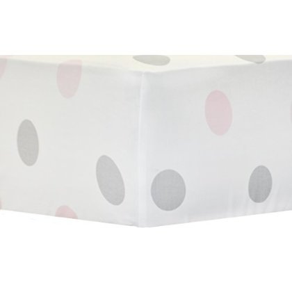 The fitted crib sheet with elastic band through the whole sheet consists of playful pink and gray polka dots.