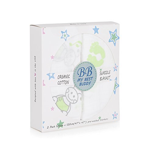 Muslin Swaddle Blanket set - 100% Organic Cotton by My Best Buddy - - great for birthdays and baby showers by My Best Buddy