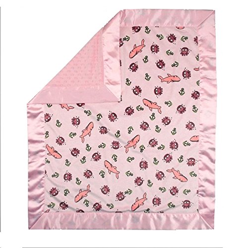 - My Blankee Sharkies Minky Pink w/ Minky Dot Pink Baby Blanket, 30 x 35