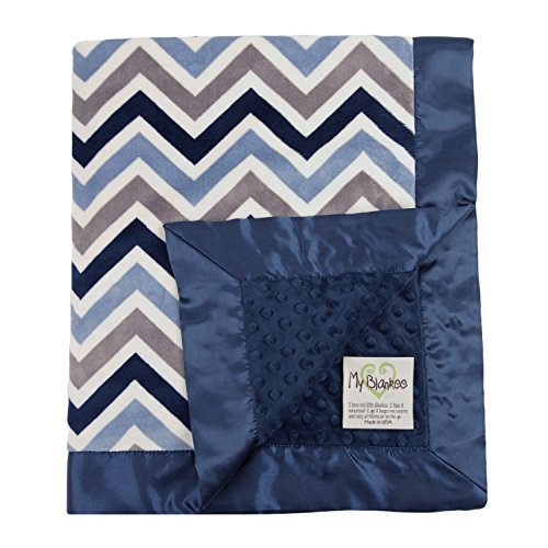 My Blankee Chevron Minky Multi Silver w/ Minky Dot Navy Blue Baby Blanket, 30 X 35 by My Blankee