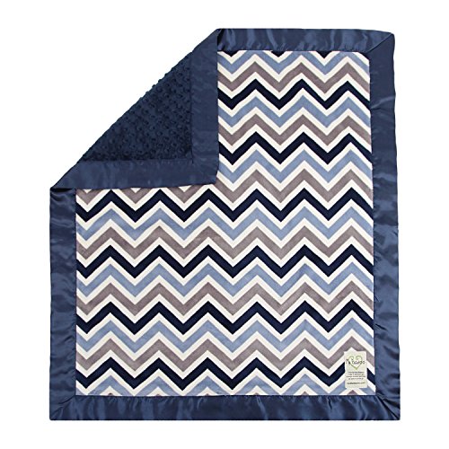 - My Blankee Chevron Minky Multi Silver w/ Minky Dot Navy Blue Baby Blanket, 30 X 35