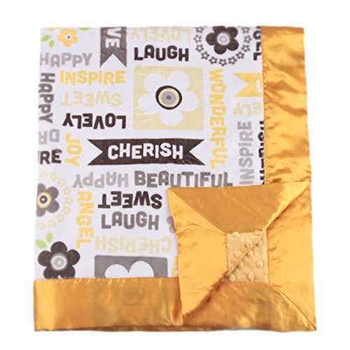 - My Blankee Word Play Sunshine Minky w/ Minky Dot Mango Baby Blanket, 30 x 35