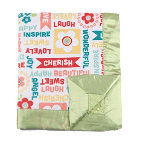 - My Blankee Word Play Minky Juicy Fruit w/ Minky Dot Apple Green Baby Blanket, 30 x 35