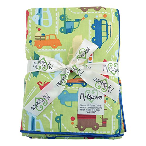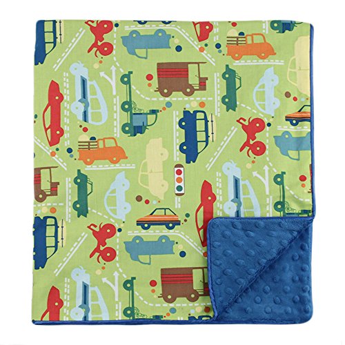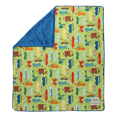 - My Blankee Beep Beep Organic Cotton Lime Green w/ Minky Dot Electric Blue Baby Blanket, 30 X 35