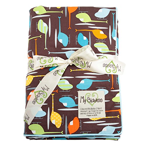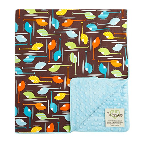 - My Blankee Helicopters Organic Cotton Brown w/ Minky Dot Blue Baby Blanket, 30 X 35