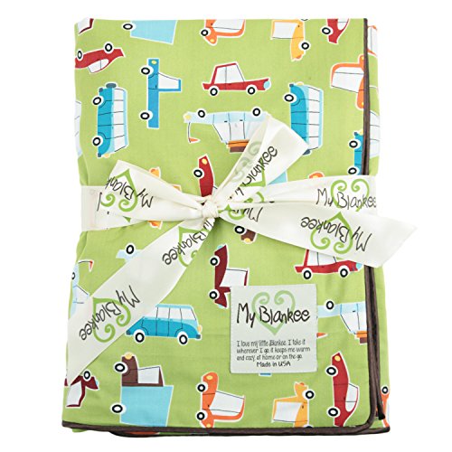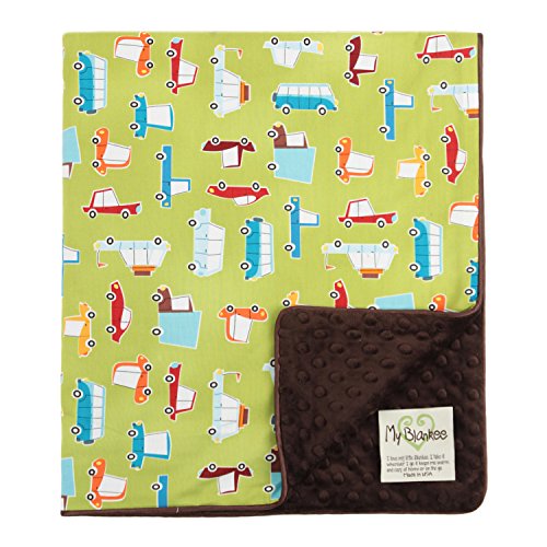 My Blankee Road Trip Organic Cotton Lime Green w/ Minky Dot Brown Baby Blanket, 30 X 35 by My Blankee