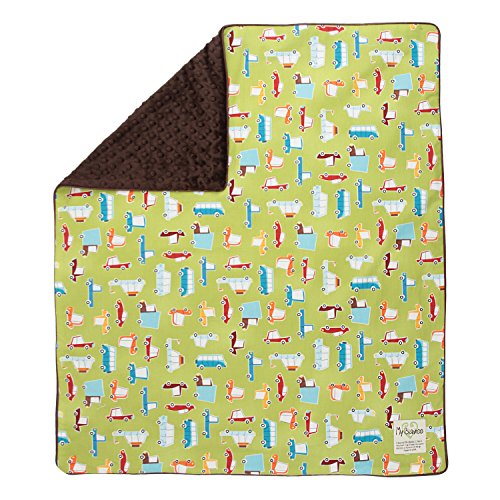 - My Blankee Road Trip Organic Cotton Lime Green w/ Minky Dot Brown Baby Blanket, 30 X 35