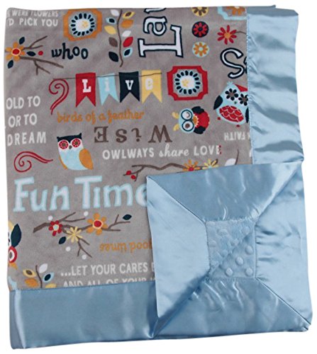 - My Blankee Owl Word Minky Dusk w/ Minky Dot Blue Baby Blanket, 30 x 35