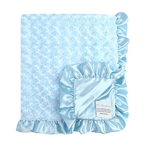 My Blankee Luxe Snail Back Satin Ruffle Satin Border Blanket, Blue, 28 x 35 by My Blankee