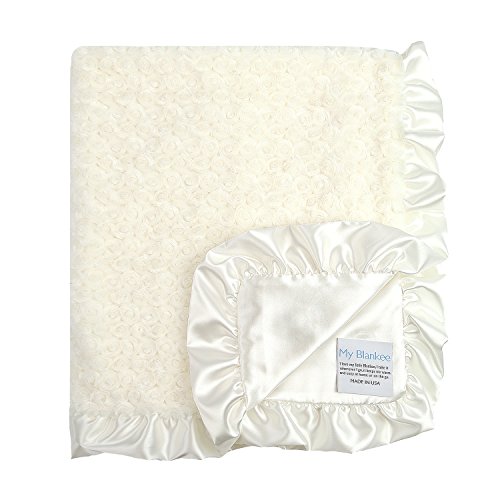 My Blankee Luxe Snail Back Satin Ruffle Satin Border Blanket, Cream, 28 x 35 by My Blankee