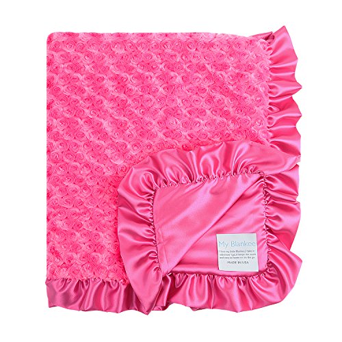 My Blankee Luxe Snail Back Satin Ruffle Satin Border Blanket, Raspberry, 28 x 35 by My Blankee