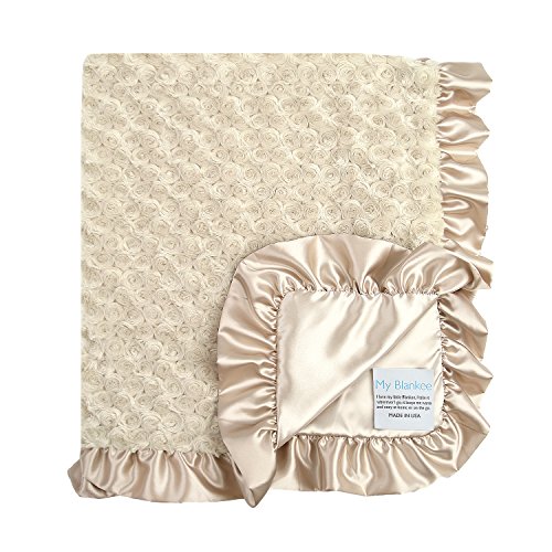 My Blankee Luxe Snail Back Satin Ruffle Satin Border Blanket, Tan, 28 x 35 by My Blankee