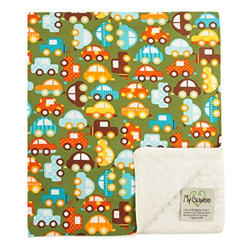 My Blankee Cars Organic Cotton Lime w/ Minky Dot Cream Baby Blanket, 30" X 35" [並行輸入品]