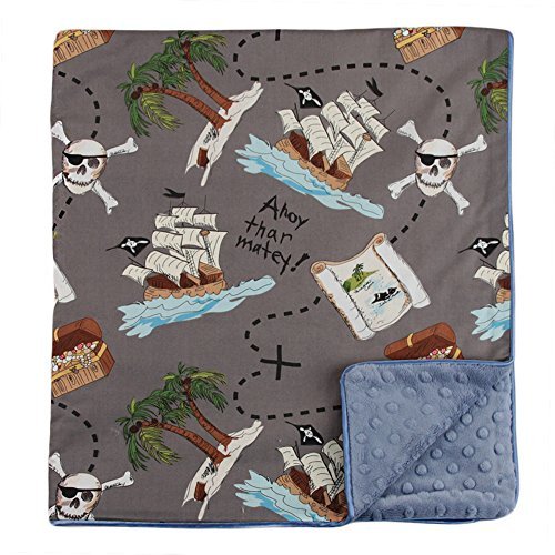My Blankee Treasure Hunt Organic Cotton Charcoal w/ Minky Dot Periwinkle Baby Blanket, 30" X 35" [並行輸入品]