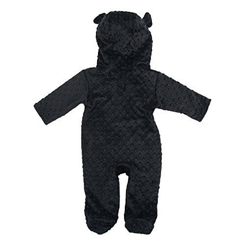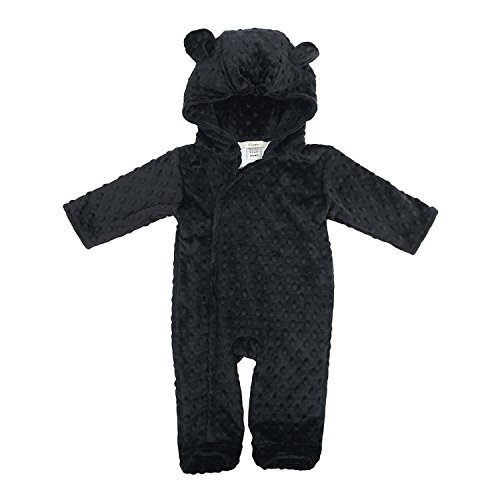 - My Blankee Hooded Footie Romper Minky Dot with Ears, Black, 3-6 Months