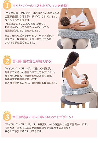 - お母さんと赤ちゃんが最適な姿勢で授乳できるようデザインされています。肩 腰 腕 肘の負担を軽減し、赤ちゃんにも楽な姿勢が保てます。また 帝王切開 をした腹部にもやさしい理想的な設計になっています。