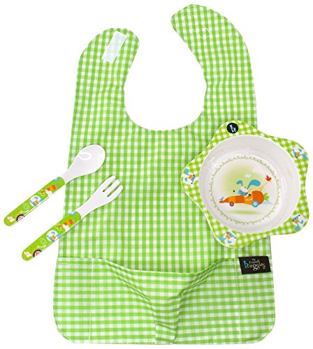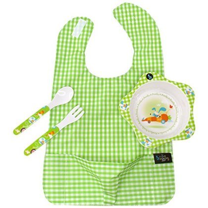 My Friend Huggles Feeding Bowl & Bib, with Food Catcher Pocket, Green [並行輸入品]