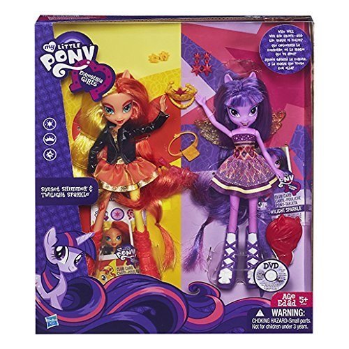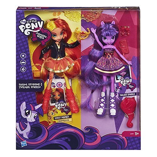 Sunset Shimmer and Twilight Sparkle view larger My Little Pony Equestria Girls - Sunset Shimmer and Twilight Sparkle Figures There's a reason we look familiar--we're Equestria Girls! A magic mirror connects the world of My Little Pony to Canterlot High, where some thins change, but friendships remain magical! These Twilight Sparkle and Sunset Shimmer pony figures will be true friends for all your Equestria Girls adventures! Your Twilight Sparkle pony's smart style matches her flair for finding every answer, but your Sunset Shimmer figure's striking sense of fashion steals a lot of attention. Which one will win the 'magical' Fall Formal Princess crown? That's up to you! My Little Pony and all related characters are trademarks of Hasbro.