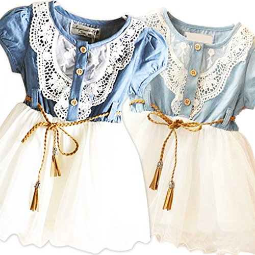 子供服 清楚 な レース ワンピース ひらひら ドレス スカート (J:水色・薄色130cm)