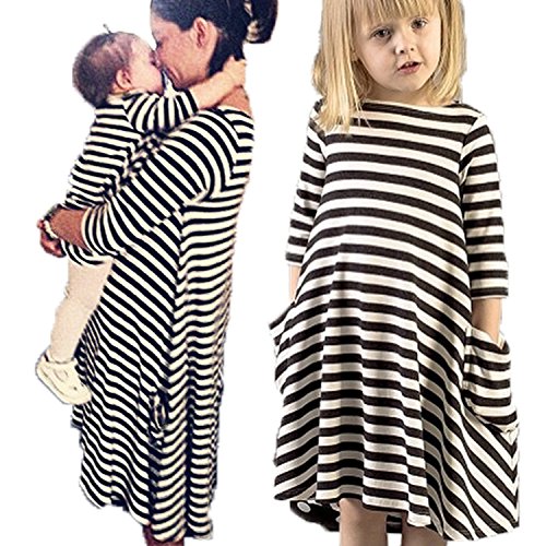 - 子供服としてもレディース服としても可愛い♪ 親子でペアルックができる、しましま柄・ボーダー柄のワンピースです♪