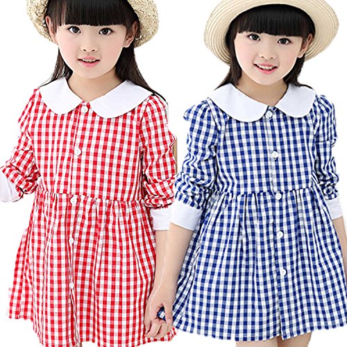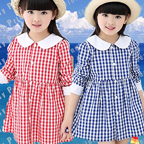 清楚 で シンプル な チェック ワンピース 格子柄 子供服 (110センチ, 赤)