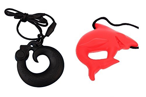 - MyBoo Autism/Sensory/Teething Chewable Dragon and Shark Pendant Bundle - Set of 2, Black/Red