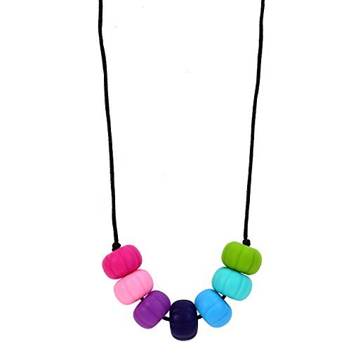 Babies will find soothing comfort by chewing this easy to hold teether necklace with chunky beads;Matte, bright and graspable beads come on a knotted breakaway cord and are machine washable;Makes a wonderful manipulative for autistic children or adults;Also a fantastic tool for individuals with sensory processing disorder (SPD), oral-motor or sensory seeking needs;Made of nontoxic, FDA-compliant food-grade silicone and is BPA, odor and taste free