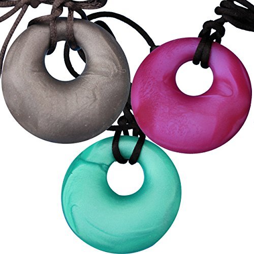 - MyBoo Autism Sensory Chewable Round Pendant - Set of 3, Violet/Turquoise/Black