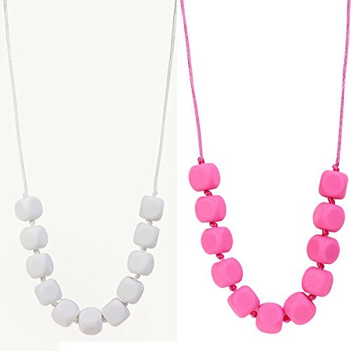 - MyBoo Autism/Sensory/Teething Chewable Funky Square Beaded Necklace - Set of 2, White/Pink