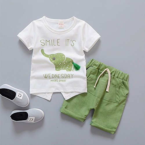 MyMei 子供服 ベビー服 Tシャツ ショートパンツ 上下2点セット 男の子ウェア 通学 お出かけ カジュアル 夏ウェア 柔軟性 通気性 (80, グリーン)