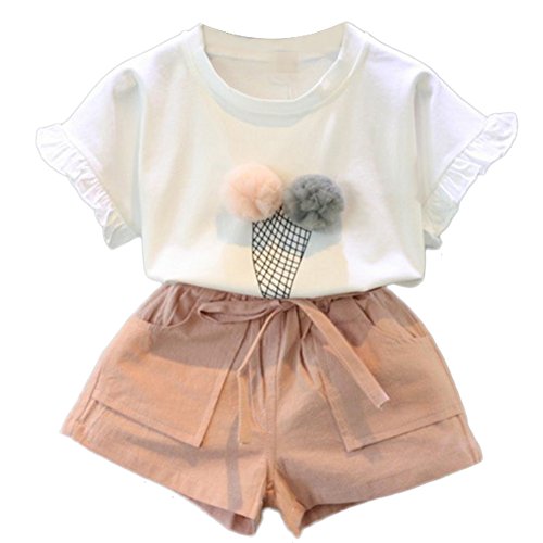 MyMei 子供服 ベビー服 Tシャツ ショートパンツ 上下2点セット ガールズウェア 通学 お出かけ カジュアル 夏ウェア 柔軟性 通気性 (100)