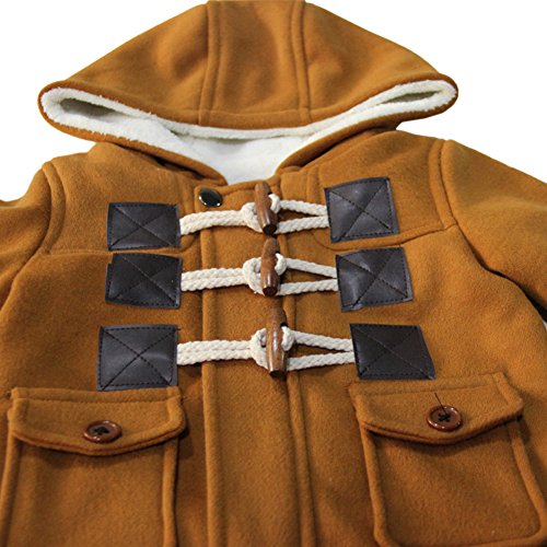 MyMei かわいい 無地 ダッフルコート 子供 キッズ ベビー服 綿服 アウター ジャケット フード付き フォーマル 秋冬 防寒 (120CM, ブラウン)
