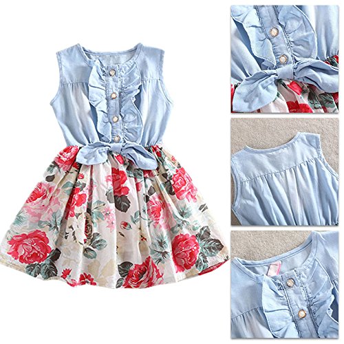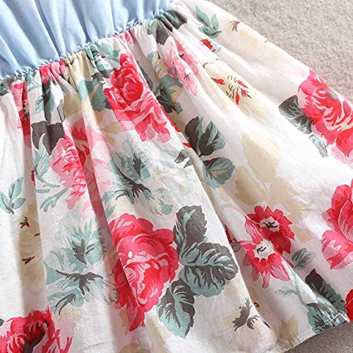MyMei 子供服 ワンピース ドレス スカート ガールズウェア 通学 お出かけ カジュアル 春夏ウェア 袖なし 花柄 伸縮性 通気性 吸汗 (100)