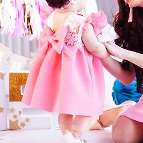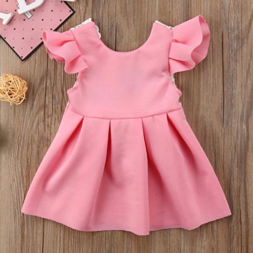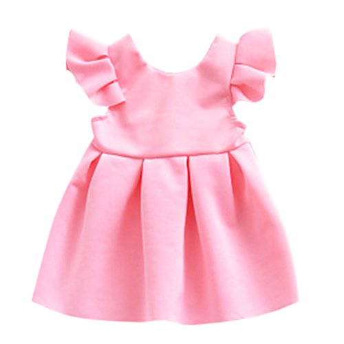 MyMei ワンピース ドレス スカート ベビー服 子供服 ガールズウェア カジュアル 春夏ウェア 袖なし 無地 伸縮性 通気性 吸汗 (80, ピンク)