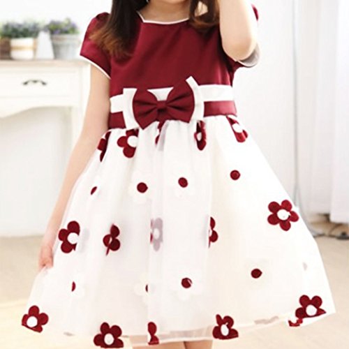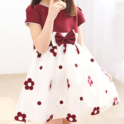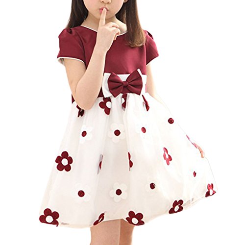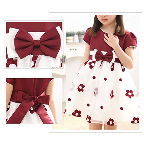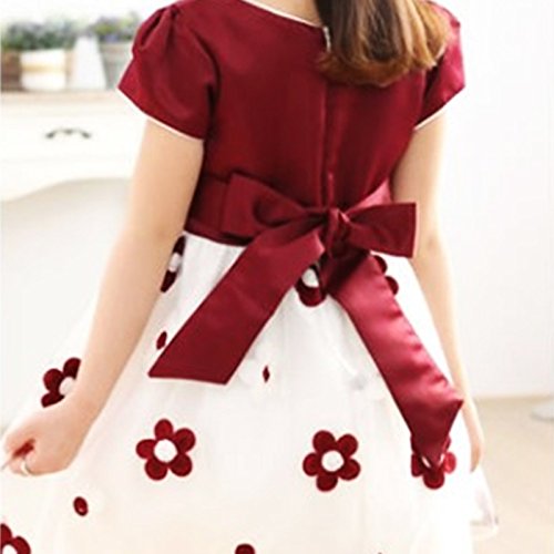 MyMei ワンピース ドレス スカート 子供服 ガールズウェア 通学 カジュアル 春夏ウェア 袖なし 花柄 通気性 柔軟性 (160, ワインレッド)
