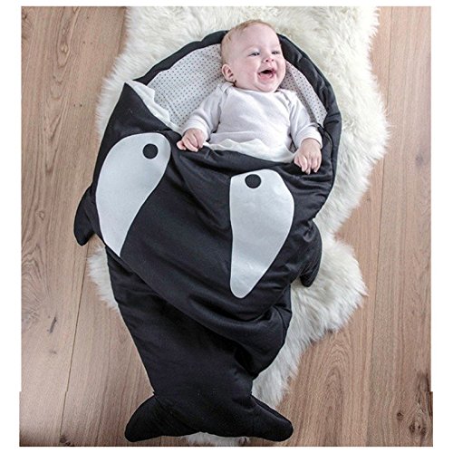 MyMei ベビーおくるみ 赤ちゃん 寝袋 新生児 ベビー おくるみ ブランケット 布団 8色 お出かけ用品 寒さ対策 出産祝い かわいい シャーク形 魚 サメちゃん (ブラック)