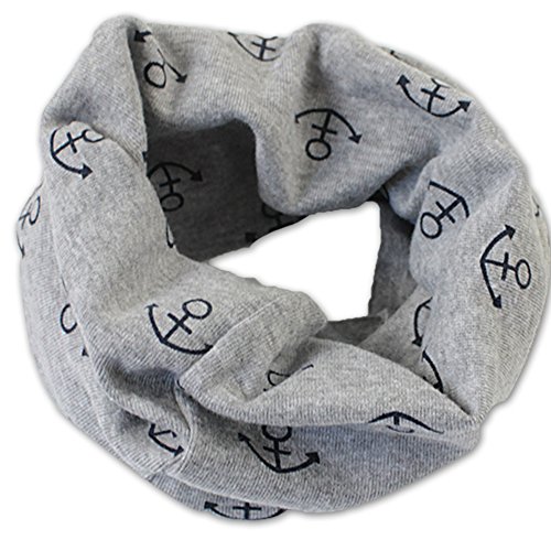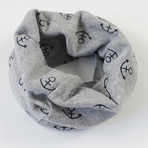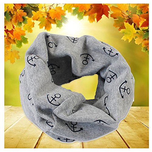 MyMei 秋冬 ネックウォーマー スヌード キッズ ベビー 子供 スカーフ 襟巻 ファッションマフラー 女の子 男の子 防寒 かわいい おしゃれ 首元保温 出産祝い プレゼント 船錨柄 (グレー)