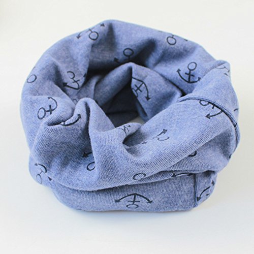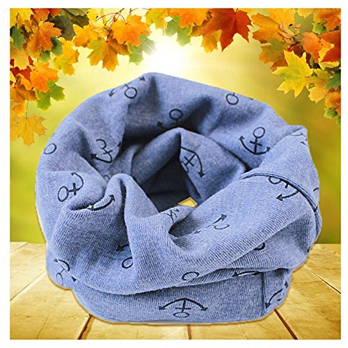 MyMei 秋冬 ネックウォーマー スヌード キッズ ベビー 子供 スカーフ 襟巻 ファッションマフラー 女の子 男の子 防寒 かわいい おしゃれ 首元保温 出産祝い プレゼント 船錨柄 (ブルー )