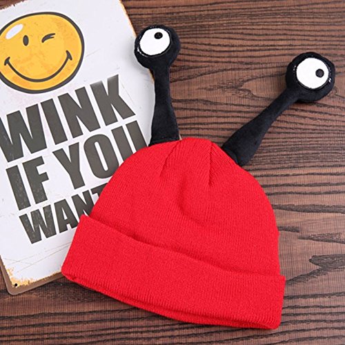 MyMei かわいい アニマル帽子 子供用 ベビー 赤ちゃん 男女兼用 ニットキャップ 昆虫角 ミツバチ風 秋冬 ふかふか あったか 防寒 赤ちゃん写真 記念写真撮影 誕生日プレゼント ギフト メモリアル 出産祝い 女の子 男の子 (レッド)