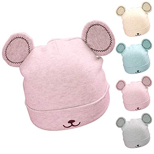 MyMei ベビー用 帽子 キッズ 赤ちゃん 熊さん 可愛い フリーサイズ 綿 防寒 防風 暖かい 秋冬用 (ピンク)