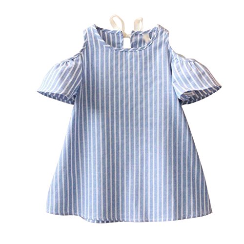 MyMei ワンピース ドレス スカート 子供服 ガールズウェア 通学 カジュアル 春夏ウェア 半袖 ゆったり 伸縮性 通気性 吸汗 (140, ライトブルー)
