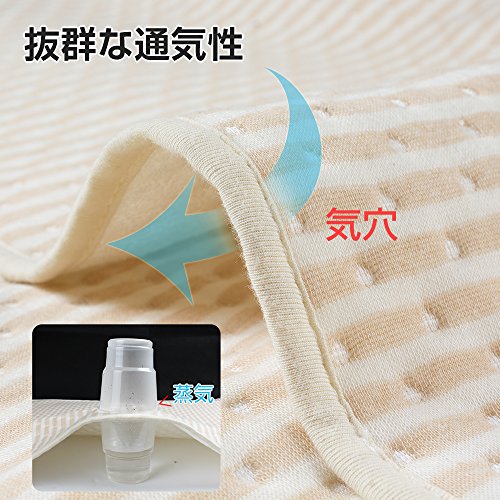 - 【驚きな吸水力·抜群な通気性】程よい厚みのある素材であり、おねしょ、寝汗などをしっかり吸収してくれます。水分が表側に染み込みますが、防水加工のため、裏までは浸透しません。透湿性もありムレにくい。消臭、防菌加工が施され、防水シーツはダニ予防にも効果的。